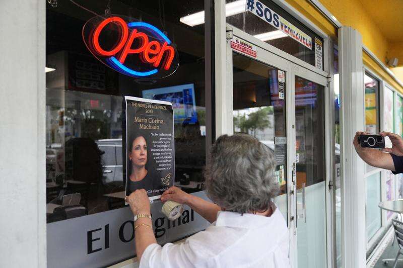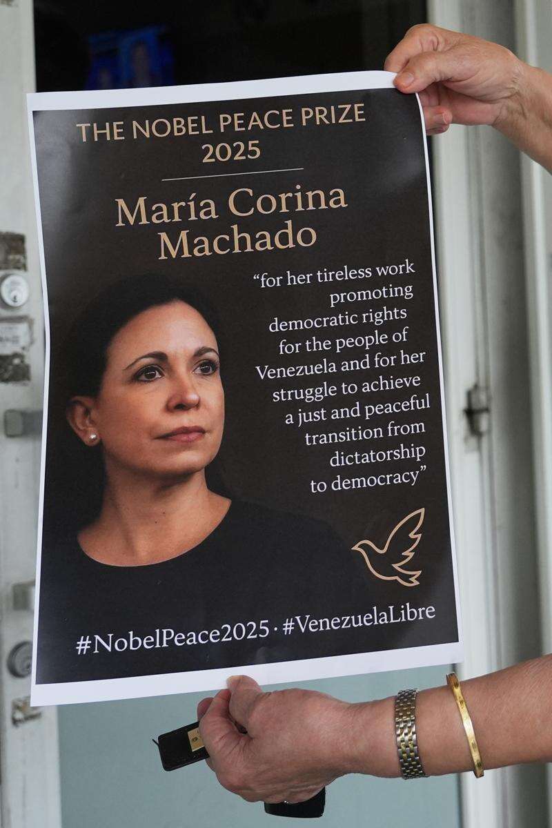 DORAL, Fla. (AP) — Venezuelans in “Little Venezuela” — the largest home for the country's natives in the United States — are welcoming the news that opposition leader Maria Corina Machado won the Nobel Peace Prize with bittersweetness as deportation threats loom.