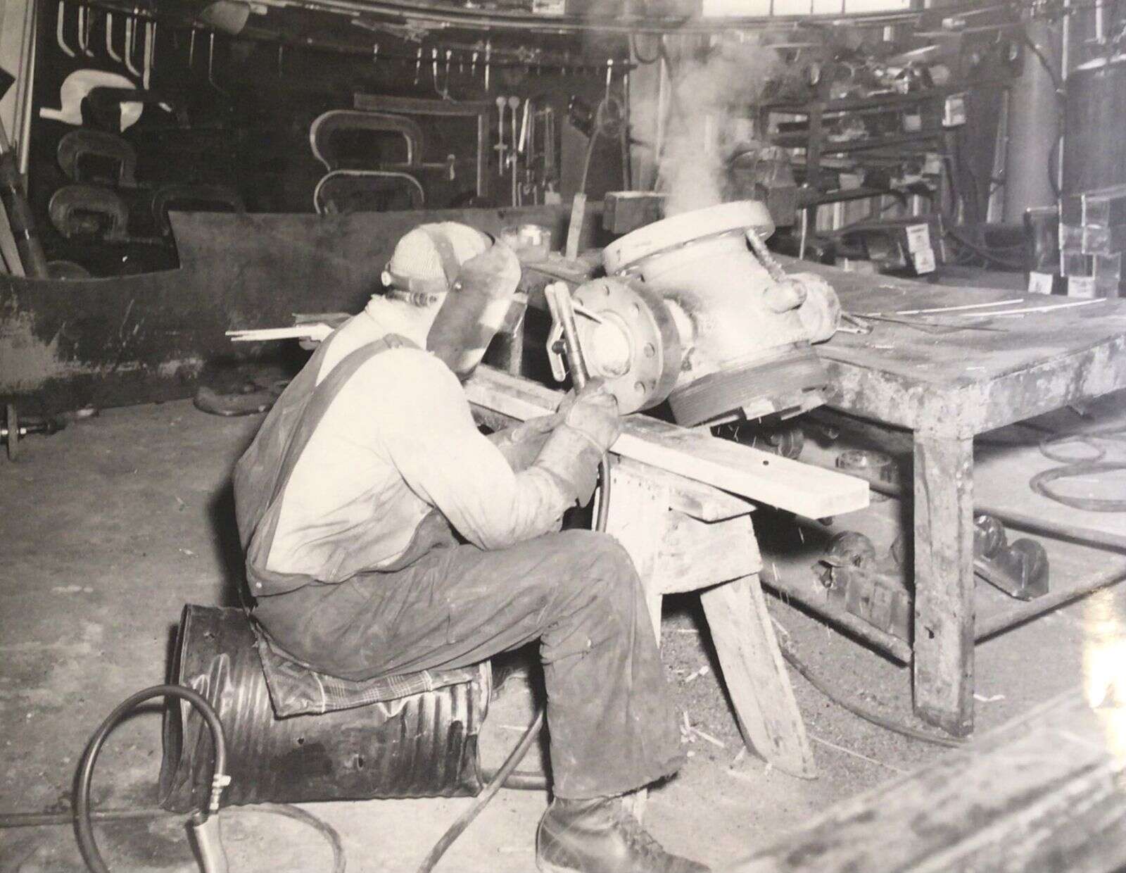 Aztec Machine Works welder, 1952.Aztec Museum Henry Jackson Photo Collection