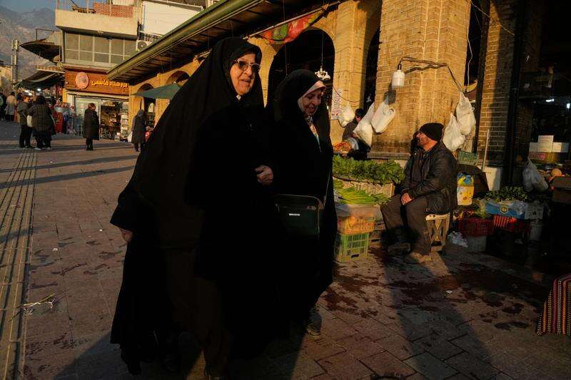 Women walk past the Tajrish bazaar in northern Tehran, Iran, Tuesday, Jan. 27, 2026. (AP Photo/Vahid Salemi)