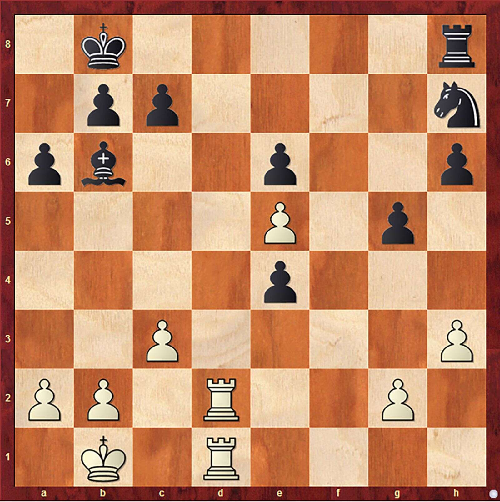 In this week’s position, black has superior numbers, but white employs doubled rooks to create a trap and secure a winning position. With this hint in mind, please try to find white’s winning line.