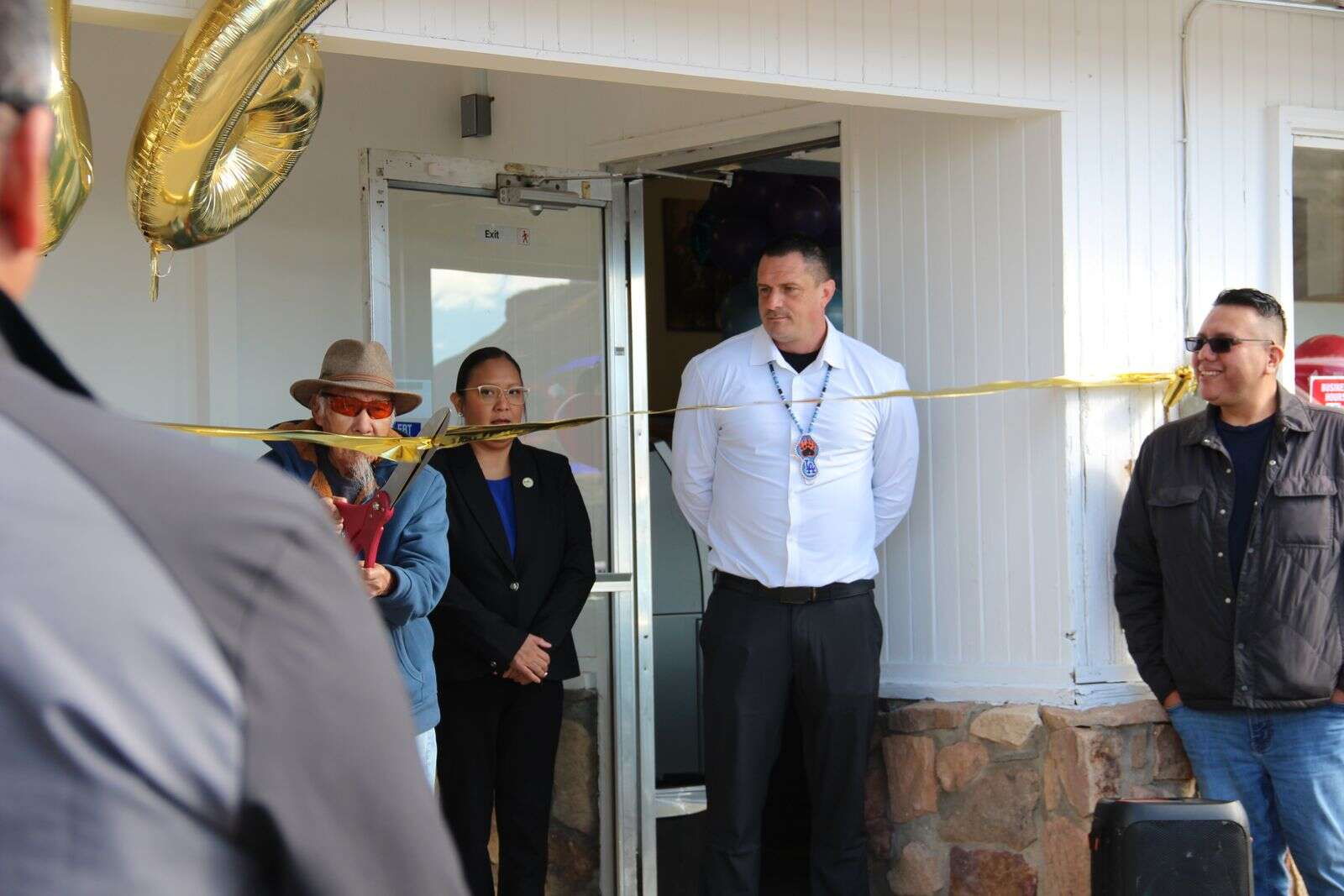 Ute Mountain Ute elder Floyd Morris was invited to cut the ribbon in recognition of his consistent presence at community events.