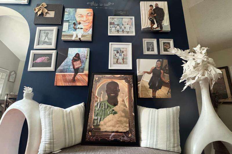 A framed photo of Fernando Clark, who died in Montgomery County Jail in 2024, sits in the living room of his sister's home in Montgomery, Ala., Wednesday, Oct. 8, 2025. (AP Photo/Safiyah Riddle)