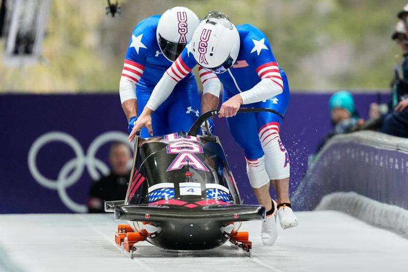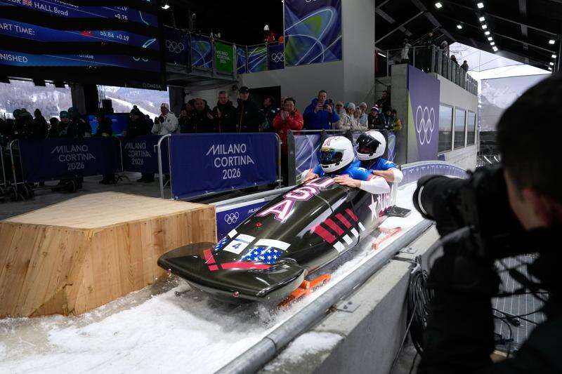 CORTINA D'AMPEZZO, Italy (AP) — Frank Del Duca and Josh Williamson quickly began icing down after their first two runs of the two-man bobsled event at the Milan Cortina Games.