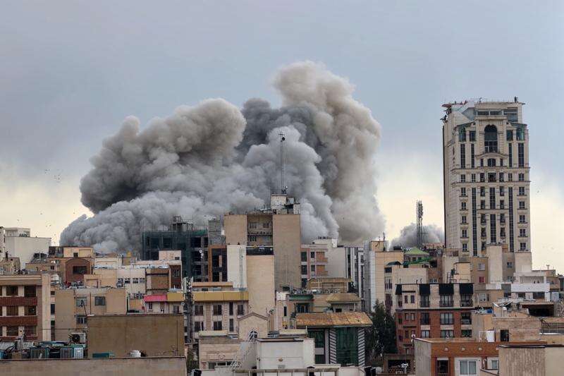 FILE - A plume of smoke rises after a strike in Tehran, Iran, Monday, March 2, 2026. (AP Photo/Mohsen Ganji, File)
