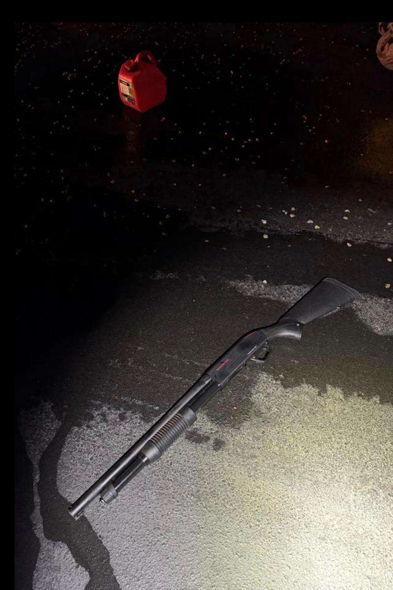 This image provided by the Palm Beach County Sheriff's Office, Sunday, Feb. 22, 2026, shows a weapon and gas can found after a 21-year-old man was shot and killed by authorities after entering the secure perimeter of Mar-a-Lago. (Palm Beach County Sheriff's Office via AP)