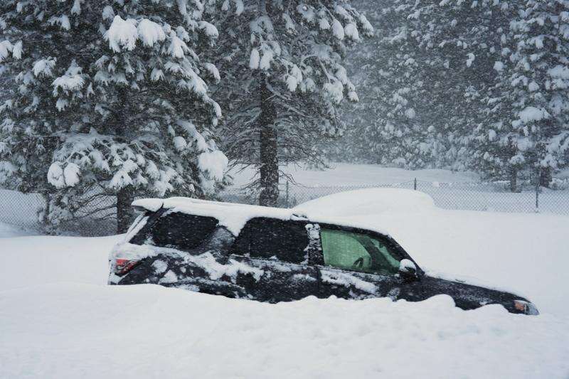 Forecasters said the western slope of the Sierra Nevada in northern Shasta County — including portions of Interstate 5 — and parts of the state’s Pacific Coast Range could see up to 8 feet (2.4 meters) of snow before the storm moves through late Wednesday.