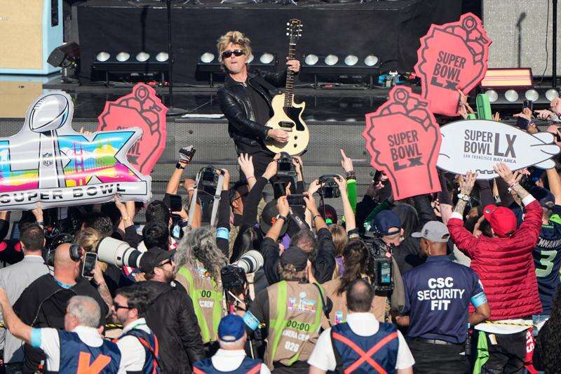 San Francisco Bay Area punk-pop vets Green Day took the pre-game stage and performed a snippet of their song “Good Riddance (Time of Your Life)” to a parade of former Super Bowl MVPs.
