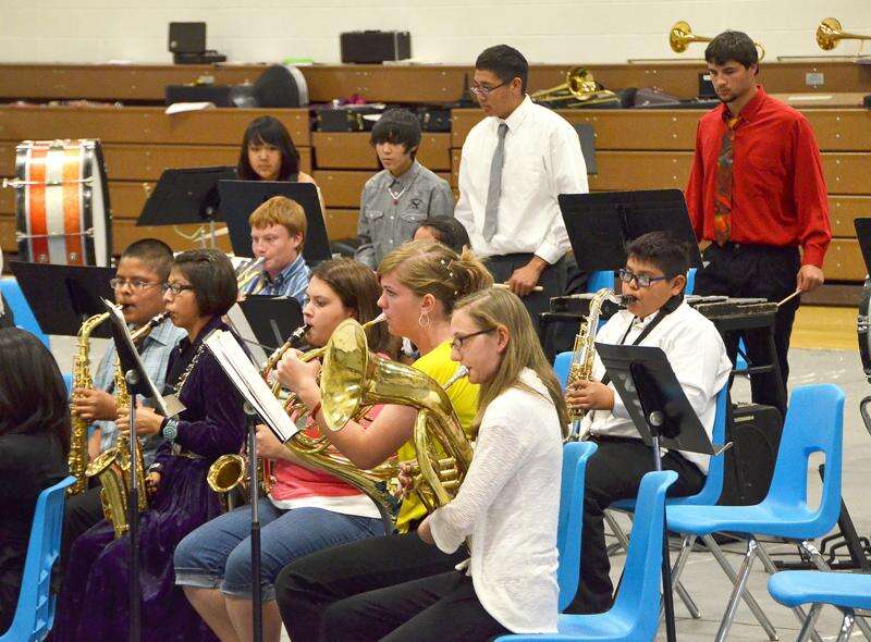 The Mancos High School band joins the Newcomb High School band Saturday at the Mancos Performance Center.