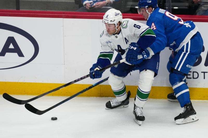 DENVER (AP) — Marcus Pettersson scored with 5:39 remaining, Brock Boeser had a hat trick and the last-place Vancouver Canucks blew a four-goal lead before beating the NHL-leading Colorado Avalanche 8-6 on Wednesday night.