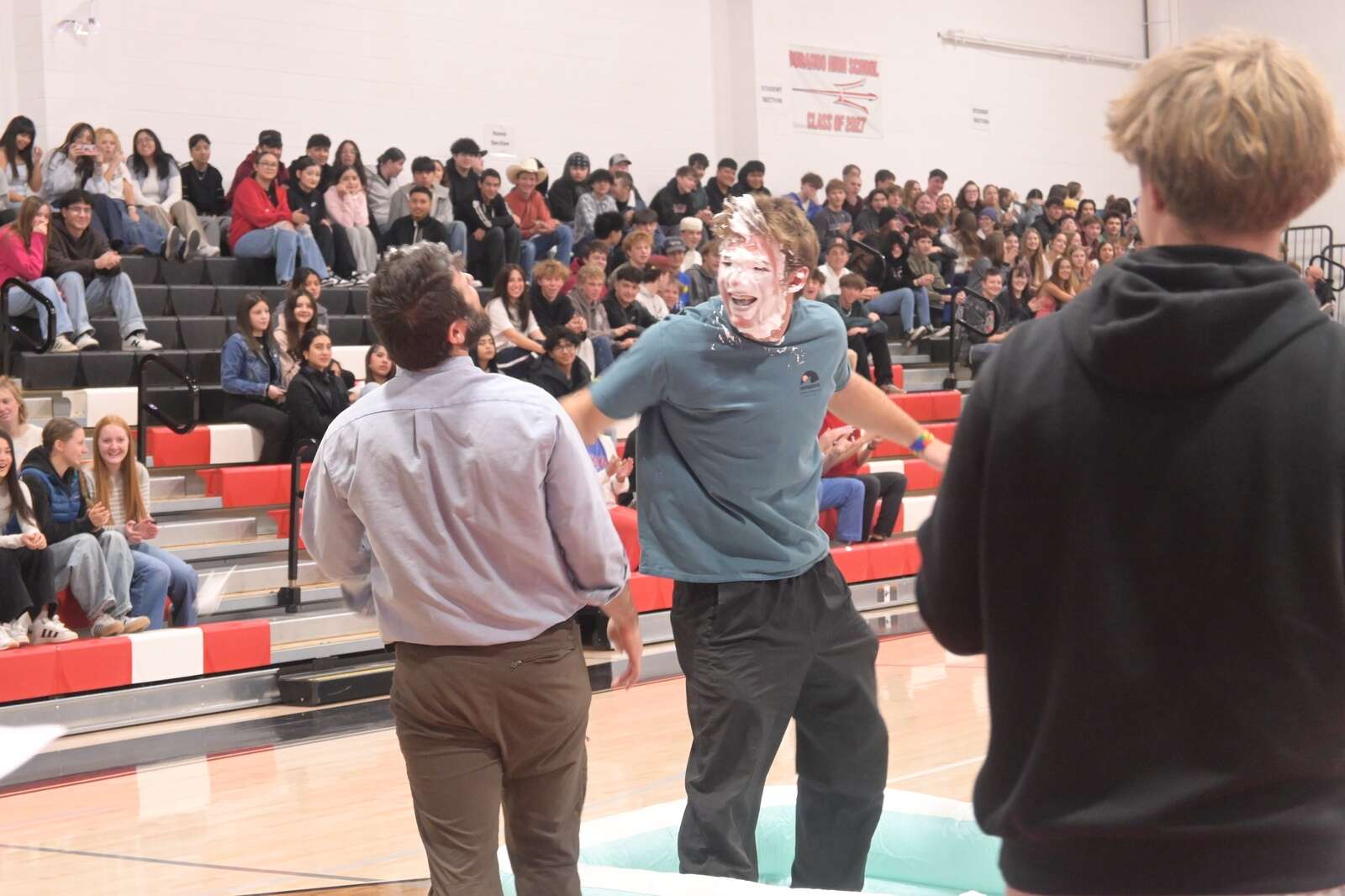 DHS staff, faculty and students went head-to-head in pairs to raise as much money as they could for Make-A-Wish throughout the week, and the winners from each face-off were announced at the assembly. Some good-natured “punishments” were doled out to the losers – including one being pied in the face and one having to wear a wedding dress for the rest of the day.
