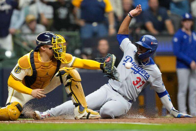 MILWAUKEE (AP) — Max Muncy was inches away from hitting a grand slam for the Los Angeles Dodgers to open the scoring in the National League Championship Series.