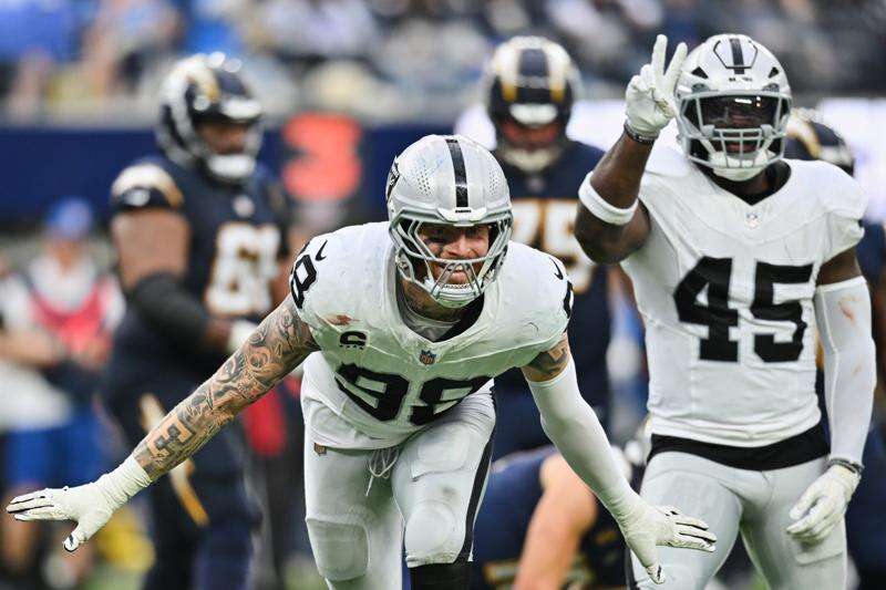 The Broncos have won 10 of their first 12 games for the first time since 2015. A victory Sunday would ensure Denver of the tiebreaker if the Broncos and New England Patriots end up sharing the same record atop the AFC playoff picture, based on what would be a 6-0 mark against common opponents. ... The Broncos have trailed in all 12 of their games so far, and their nine-game winning streak makes them the first team in NFL history to have nine consecutive comebacks. ... OLB Nik Bonitto, who batted down Marcus Mariota's 2-point pass to preserve Denver's 27-26 overtime win at Washington last week, has had double-digit sacks in back-to-back seasons. It is just the sixth time in team history — and first since former Broncos OLB Von Miller did it from 2014-18 — that a player has reached double-digit sacks in consecutive seasons. ... Rookie RB RJ Harvey has four TD runs and four TD catches so far. ... QB Bo Nix has six comebacks in the fourth quarter or overtime this season. ... Las Vegas' Brock Bowers has 1,767 yards receiving and needs just 107 to pass Rob Gronkowski for third best for a tight end in his first two seasons. Mike Ditka with 1,980 yards and George Kittle with 1,892 are also within range. ... The Raiders' 17 passes defended by defensive linemen is highest in the league. Philadelphia is next with 14. … Charles Snowden and Maxx Crosby have intercepted passes. It’s the first time since 2001 the Raiders have had two defensive linemen with an interception in a season since 2001 when Chris Cooper and Darrell Russell made picks. … Crosby comes off back-to-back games with at least four tackles for loss. Only Myles Garrett and J.J. Watt have accomplished that since 2000. ... The Raiders have 73 run stuffs, tied with Cleveland for the second most in the NFL, according to Next Gen Stats. Those are running plays that result in zero or negative yardage. Minnesota is first with 81. ... A victory would give coach Pete Carroll 173 for his career, which would move him into a tie for 16th with Jeff Fisher. Carroll is tied with Bill Parcells.