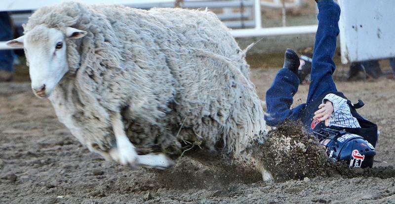 Caleb Minette hits the ground after being thrown in the mutton bustin’ competition.