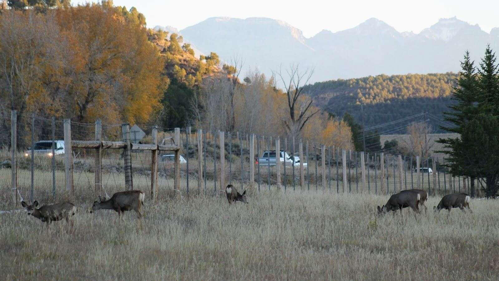 Southwest Colorado sees large herds of migrating mule deer and elk each year. In the fall, animals traverse from high‑elevation mountains to lower winter ranges. In the spring, they return to the mountains for summer.