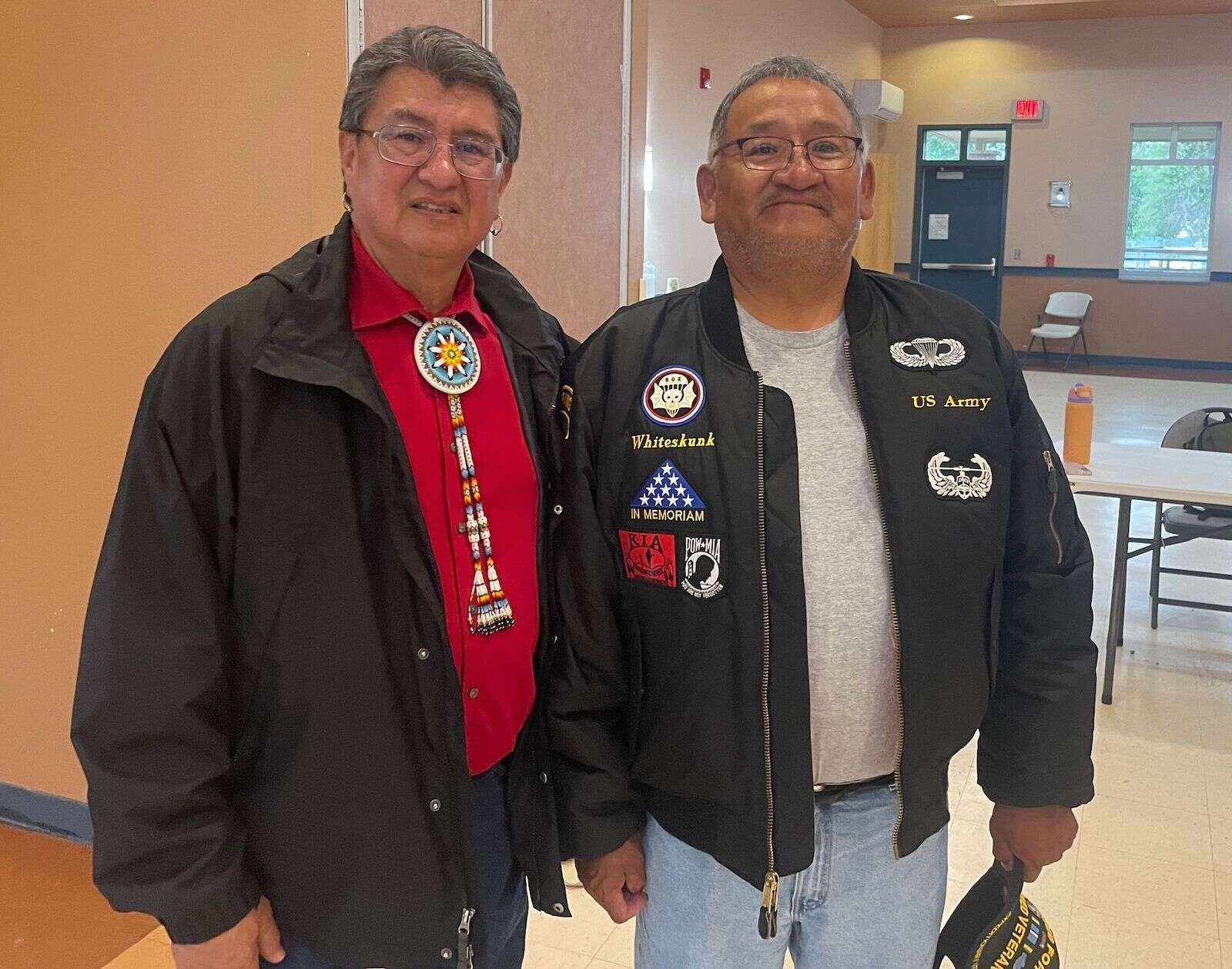 Current Ute Mountain Ute Chairman Manuel Heart (left) next to the unofficial newly elected chairman, Selwyn Whiteskunk after the tribe’s election results are announced on Friday, Oct. 10. A transition from leadership is set to take place between the two men, who have worked together on the Tribal Council for years. (Benjamin Rubin/The Journal)