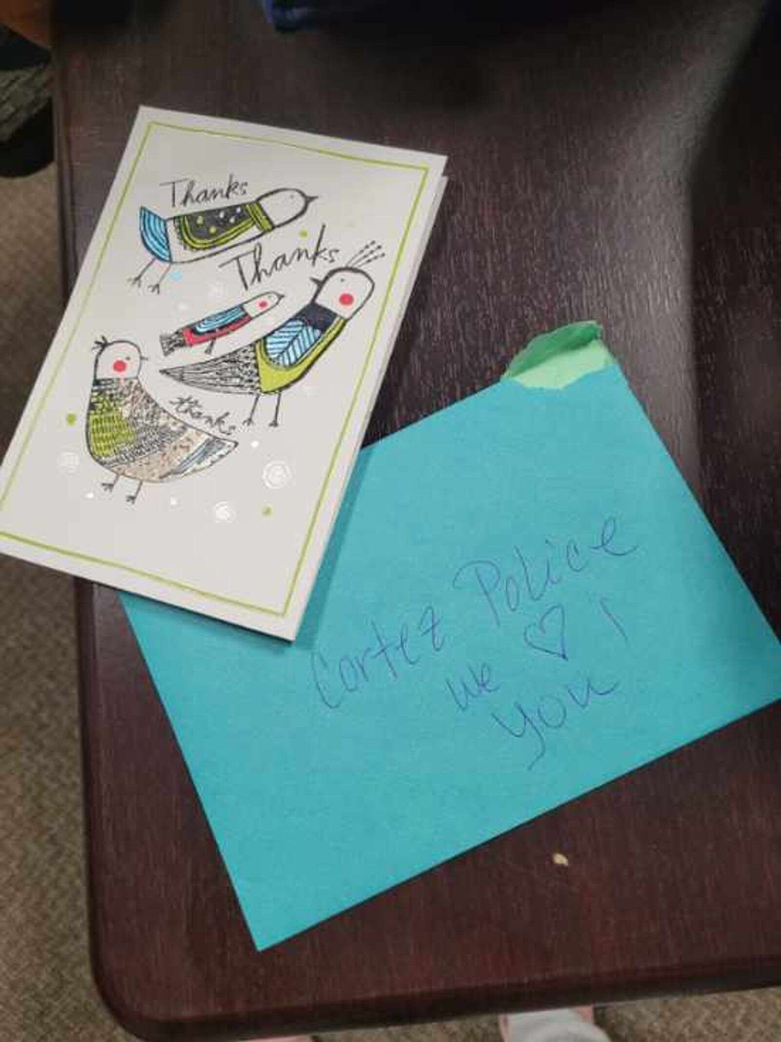 A card for officers from a student. (Joannie Olson/Courtesy photo)