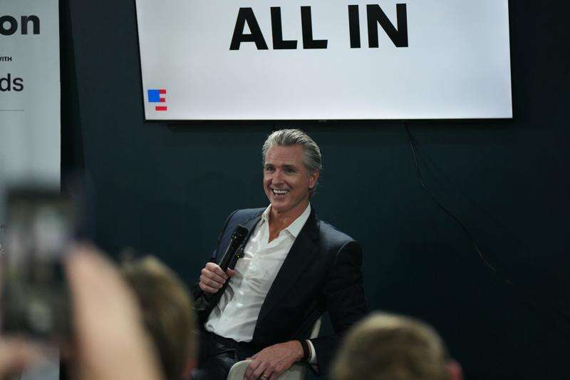 FILE -California Gov. Gavin Newsom speaks at a session at the We Mean Business Pavilion during the COP30 U.N. Climate Summit, Tuesday, Nov. 11, 2025, in Belem, Brazil. (AP Photo/Fernando Llano, File)