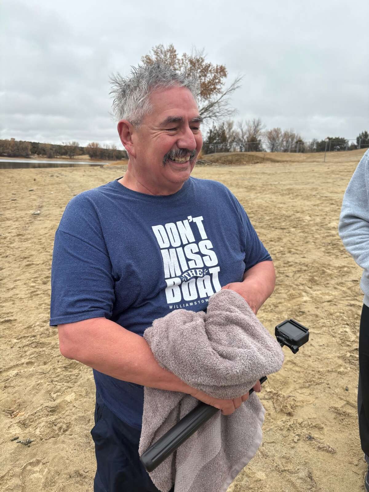 Tim Ulrich, who was also in for about 10 minutes, said he’s done the plunge every year and has been working his way up to longer stints in the water. Ulrich said the Wim Hof method was his original inspiration.