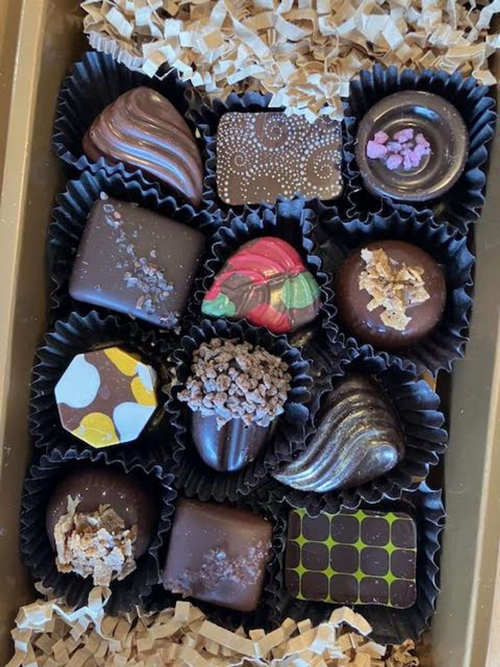 Pure cane sugar sweetens most items, and high-grade Swiss chocolate imported from Switzerland forms the base for bonbons and bars. Whritner also shared that she was trained under a chocolatier who studied at the Chocolate Academy in France.