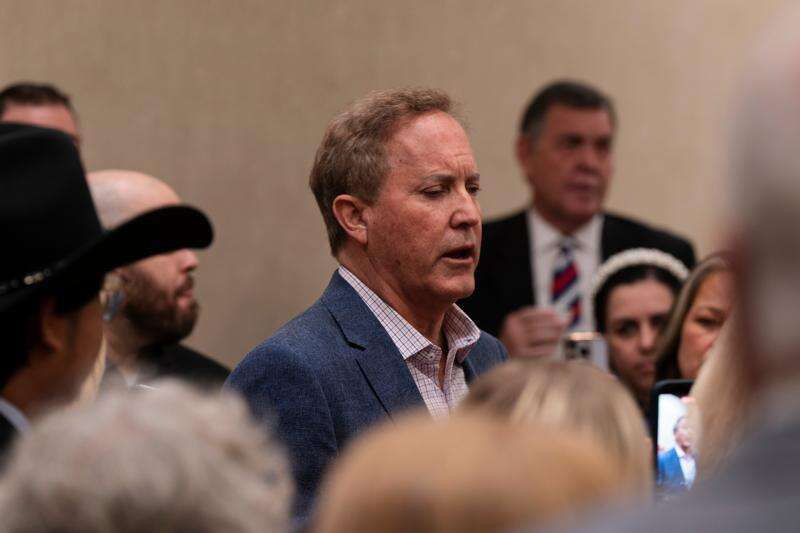 Texas Attorney Gen. Ken Paxton speaks with attendees during a meet-and-greet for his U.S. Senate candidacy at the Conservative Political Action Conference (CPAC) in Dallas, Saturday, March 28, 2026. (AP Photo/Gabriela Passos)