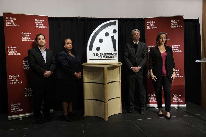 The Bulletin of the Atomic Scientists cited risks of nuclear war, climate change, potential misuse of biotechnology and the increasing use of artificial intelligence without adequate controls as it made the annual announcement, which rates how close humanity is from ending.