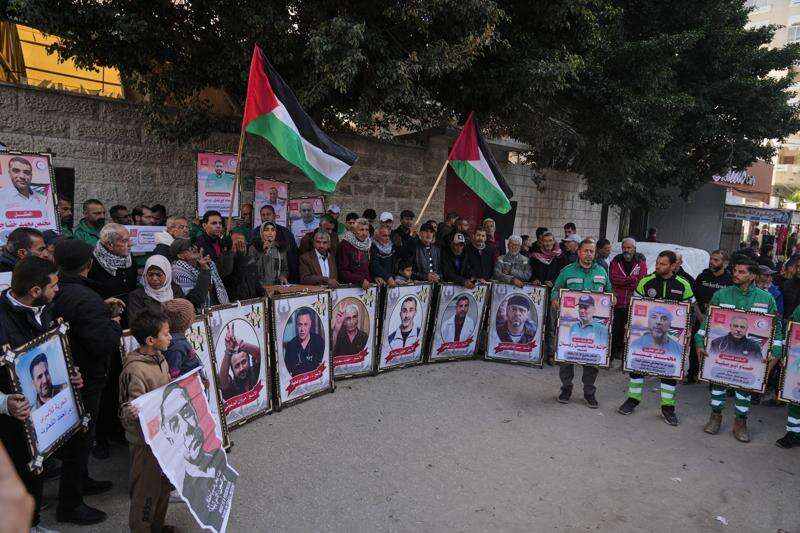 Dozens of Palestinians, including medical workers, held a protest in Gaza City on Monday to demand the release of thousands of Palestinian prisoners still being held in Israeli prisons. The protest was organized by the Palestinian Prisoners Committee outside the building of the International Committee of the Red Cross in Gaza City.