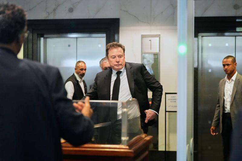 Elon Musk arrives at the U.S. District Court in Oakland, Calif., Tuesday, April 28, 2026. (AP Photo/Godofredo A. Vásquez)