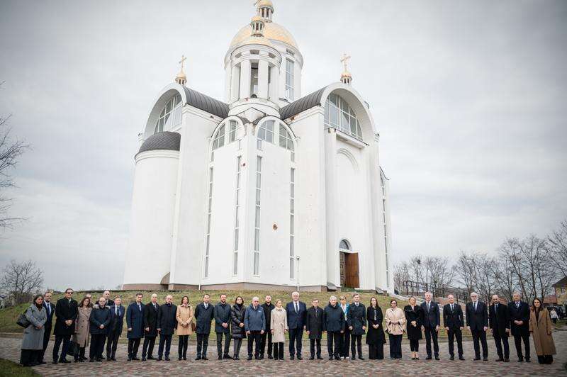 KYIV, Ukraine (AP) — European foreign ministers visited Ukraine on Tuesday to mark the fourth anniversary of atrocities committed in a town near Kyiv by Russia’s invading forces.