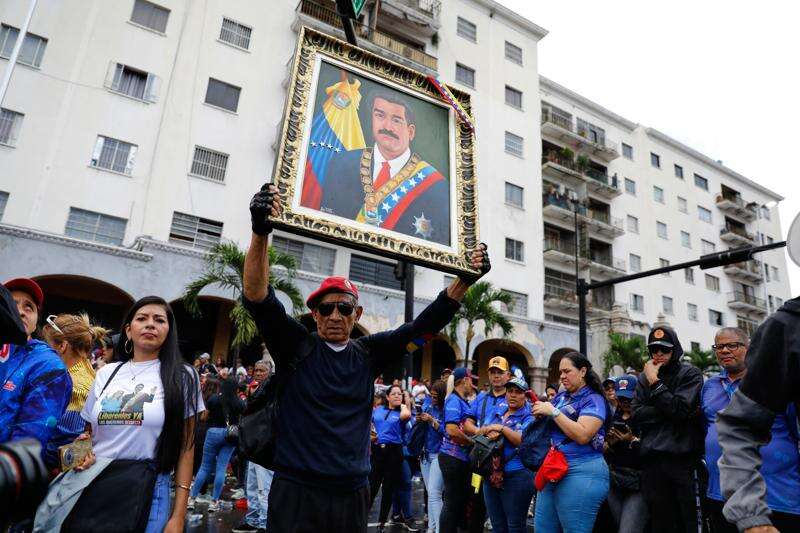 Supporters of former Venezuelan President Nicolas Maduro rally calling for his release as he faces trial in the United States after being captured by U.S. forces, in Caracas, Venezuela, Friday, Jan. 14, 2026. (AP Photo/Cristian Hernandez)