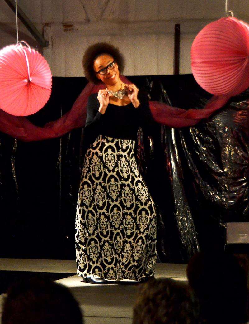 Jade Butler displays her necklace while modeling for the Pretty In Pink Fashion Show. The show raised more than $2,000 for the Women’s Cancer Coalition.