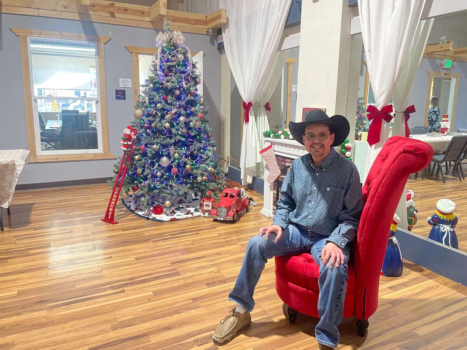 “This year we decided to try something a little bit new and do it in one centralized location where we have all of our sponsors’ wreaths. Our community can come in, families can come in, enjoy a little bit of Christmas music.”