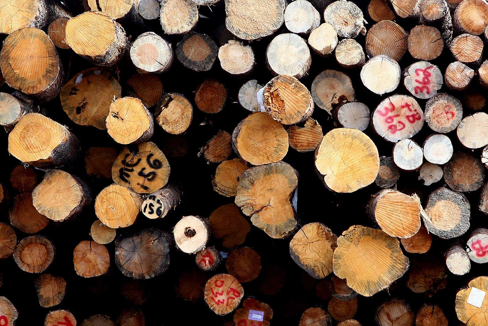Lodgepole pine trees are unloaded for processing at the Montrose sawmill in this 2010 file photo. (William Woody, Special to The Colorado Sun)