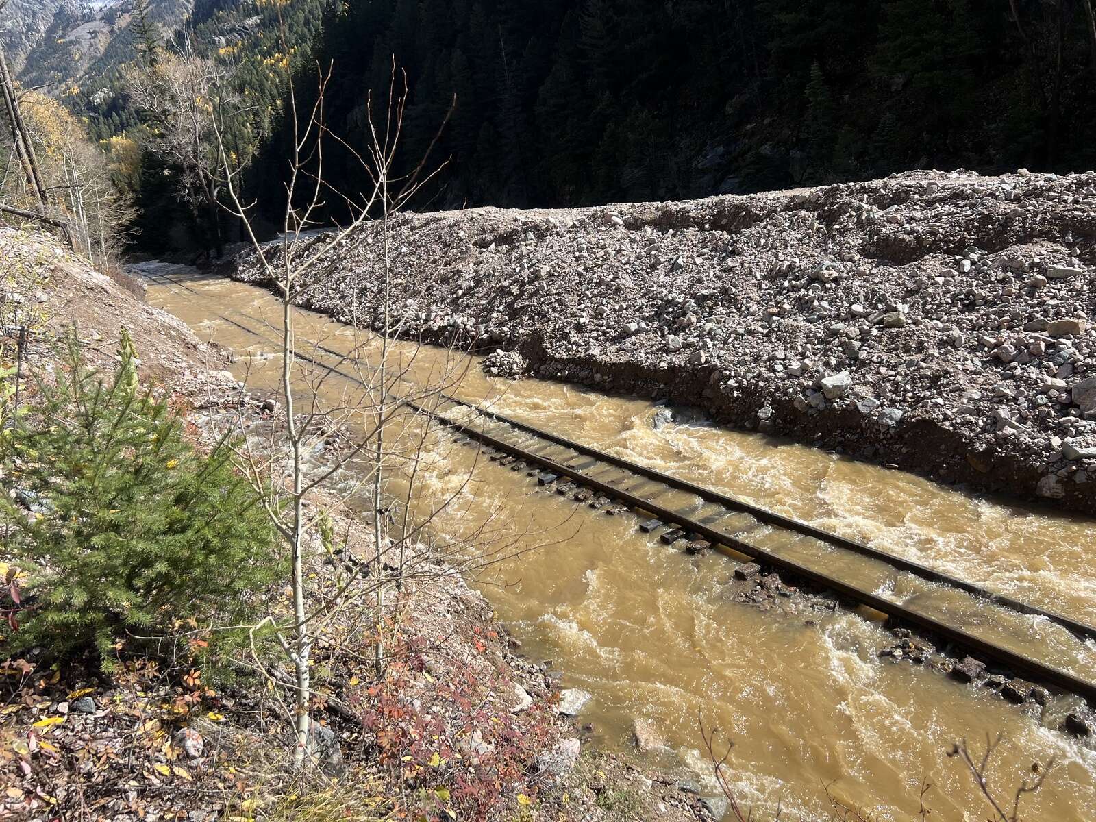 Animas River jumped bank Saturday, damaging tracks near Needleton