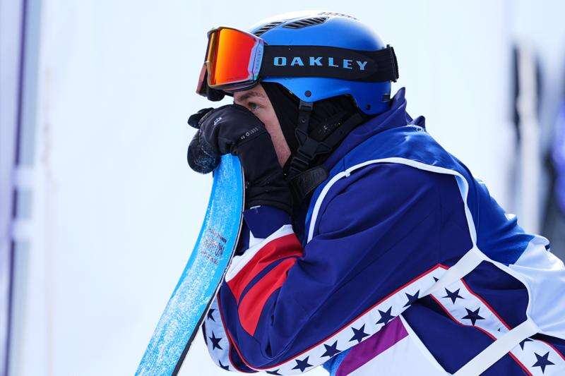 United States' Jake Canter waits for his score during the men's snowboarding slopestyle finals at the 2026 Winter Olympics, in Livigno, Italy, Wednesday, Feb. 18, 2026. (AP Photo/Rebecca Blackwell)