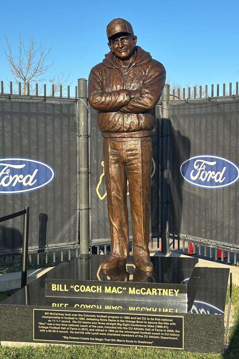 The statue was unveiled in a private ceremony Friday night that included McCartney's family and former players along with coach Deion Sanders and the current team. It was on display Saturday as fans arrived before the Buffaloes played Arizona State in their home finale.