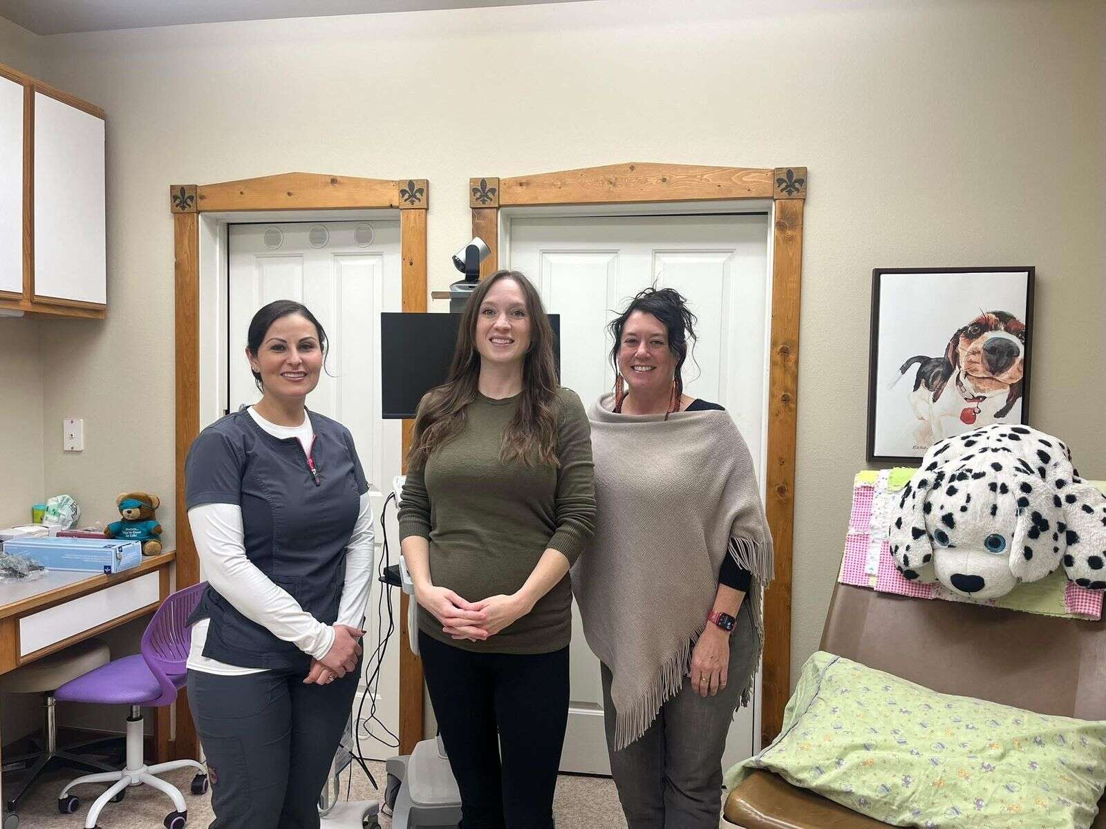 Four Corners Child Advocacy Center SANE nurse Natalia Lobato (left) and UCHealth’s Tammy Kuehl and Megan McCulley pose in the examination room with the equipment provided by UCHealth. (Courtesy photo)
