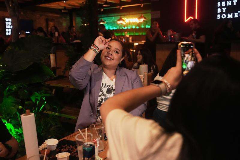 Longtime Swiftie Helen Brabant-Bleakley showed up at the Black Dog to mark her 30th birthday, wearing a teal sash with gold lettering that read: “The Life of a Birthday Girl.”