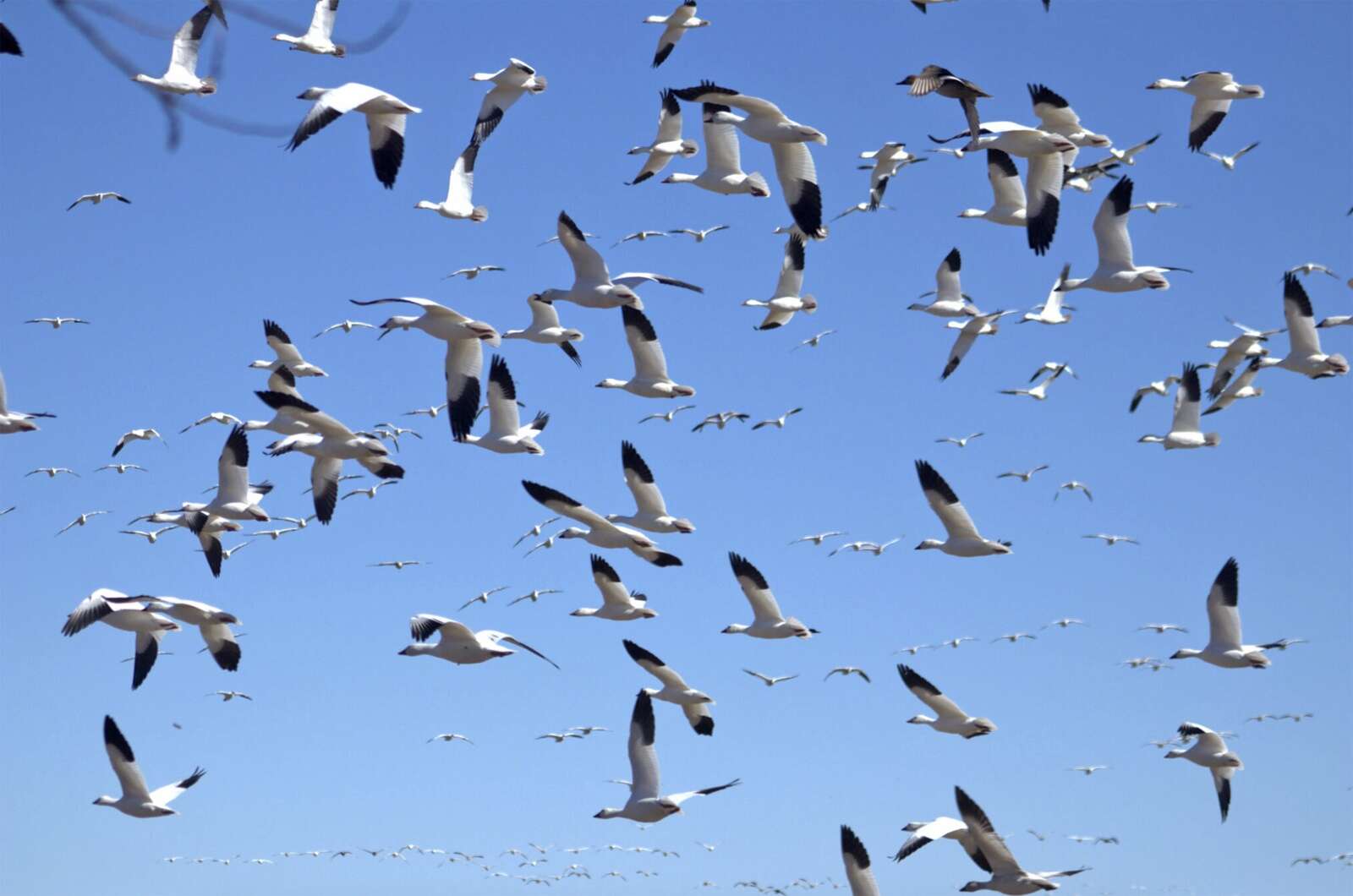 That’s because, in the fall and winter, tens of thousands of large migratory geese, cranes, and other water fowl nesting in Alaska, Canada, and the northern United States fly south to roost and forage for food.