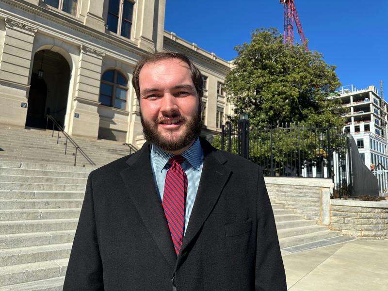 FILE - Republican Colton Moore, who resigned from the state Senate to run for Congress, poses for a photo outside the Georgia Capitol, Tuesday, Jan. 13, 2026, in Atlanta. (AP Photo/Jeff Amy, File)