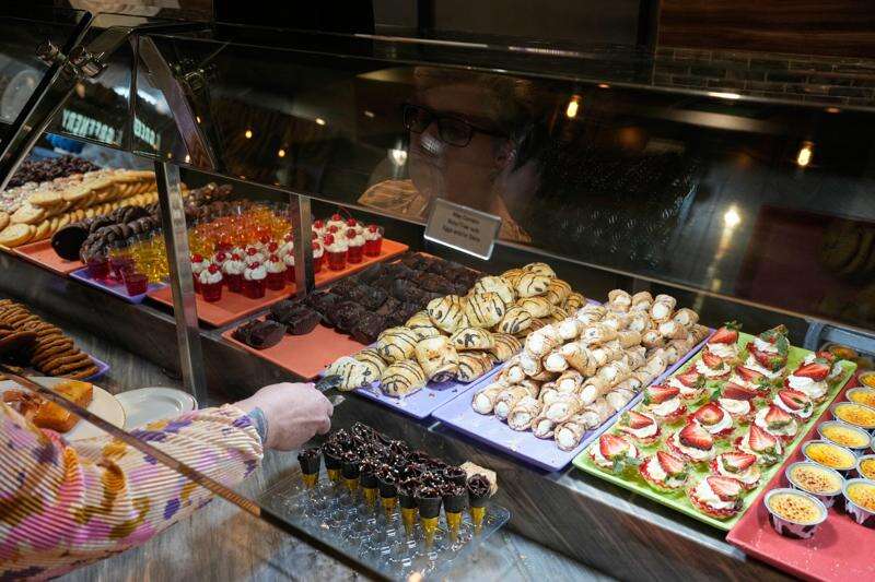 A person picks out dessert at the A.Y.C.E Buffet in the Palms resort-casino Wednesday, Jan. 28, 2026, in Las Vegas. (AP Photo/John Locher)