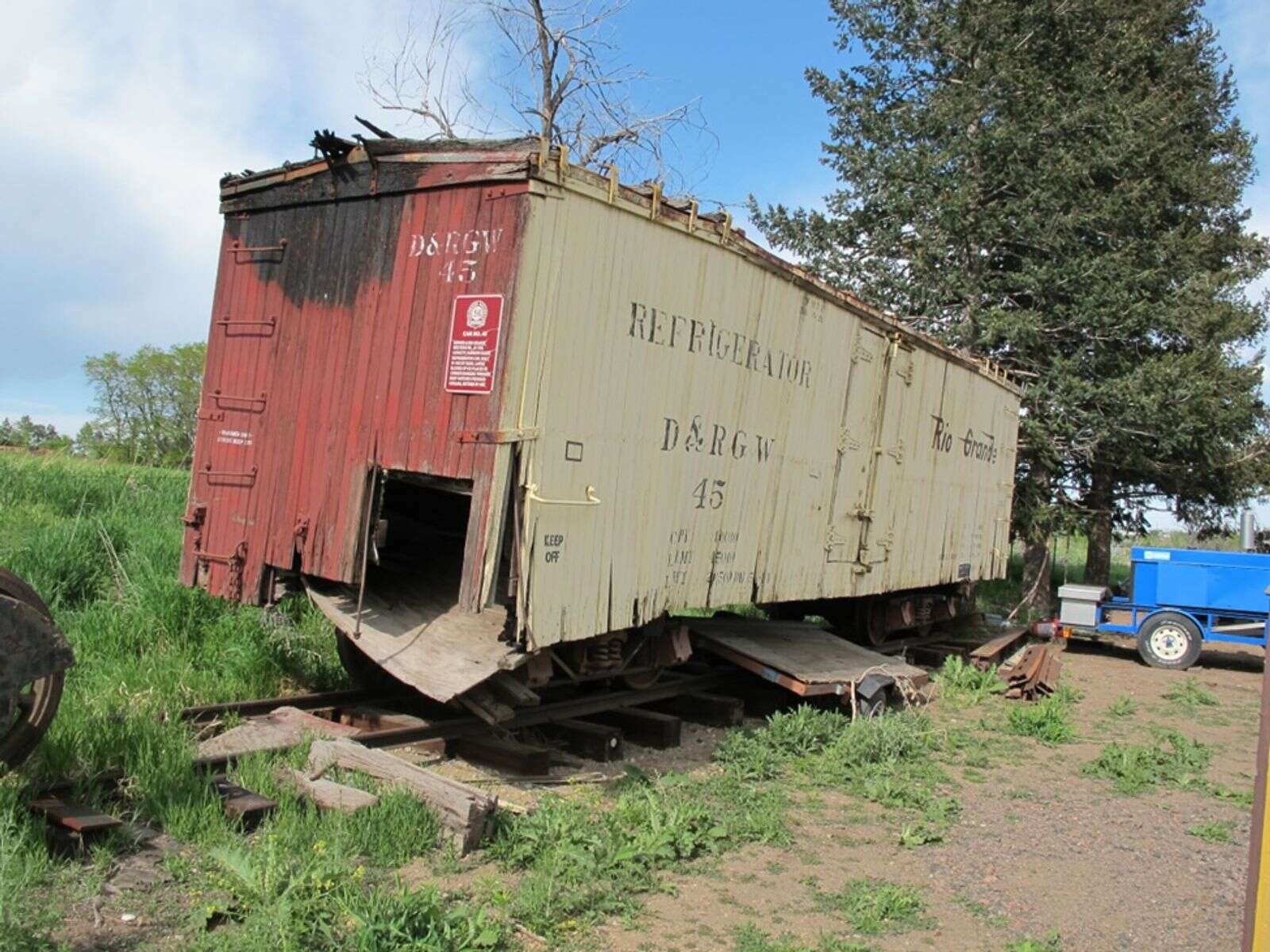 Restoration of refrigerator car No. 45 entails multiple phases, including stabilizing the car in Golden, transporting it to Durango for work, restoring it and eventually displaying it outside the Galloping Goose museum in Flanders Park.
