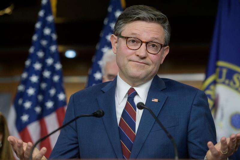 Speaker of the House Mike Johnson, R-La., speaks during a news conference at the Capitol, Tuesday, Jan. 13, 2026, in Washington. (AP Photo/Rod Lamkey, Jr.)