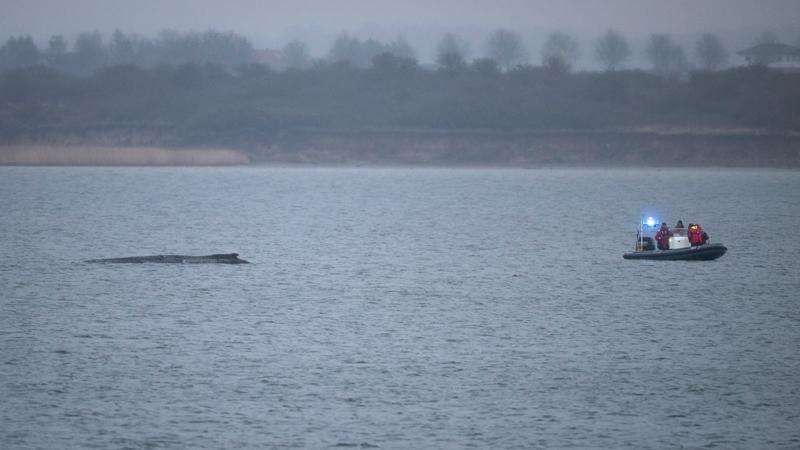 But the apparently exhausted whale was soon in trouble again, albeit in somewhat deeper water. On Tuesday, officials were again banking on giving it peace and quiet to gather enough strength to swim away, and possibly approaching it with boats to motivate it to set off.