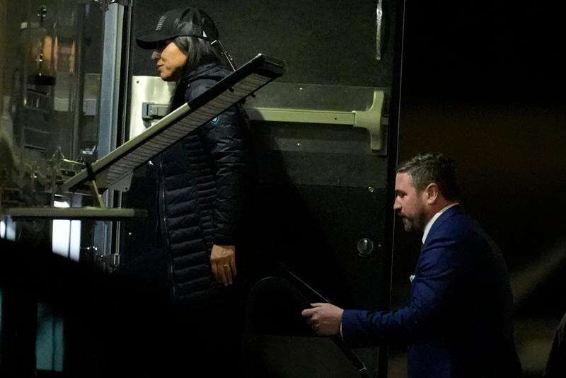 Director of National Intelligence Tulsi Gabbard, left, and FBI Deputy Director Andrew Bailey, enter a command vehicle as the FBI takes Fulton County 2020 Election ballots, Wednesday, Jan. 28, 2026, in Union City, Ga., near Atlanta. (AP Photo/Mike Stewart)