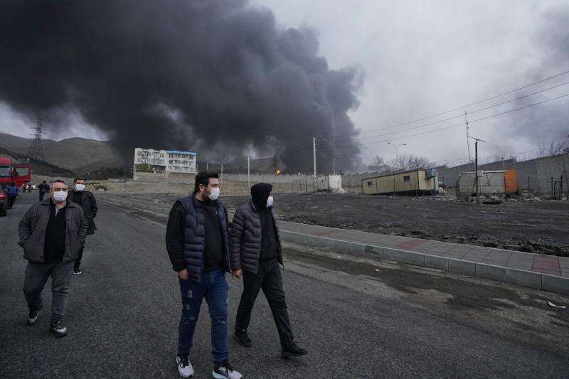FILE - A thick plume of smoke rises March 8, 2026, from an oil storage facility struck overnight in Tehran, Iran. (AP Photo/Vahid Salemi, File)
