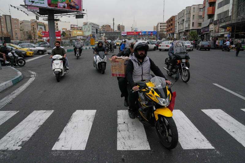People drive their motorbikes in a square in downtown Tehran, Iran, Tuesday, Feb. 24, 2026. (AP Photo/Vahid Salemi)