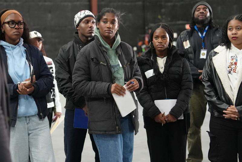 A group of college students tour Shadowbox Studios, Wednesday, Nov. 12, 2025, in Atlanta. (AP Photo/Emilie Megnien)