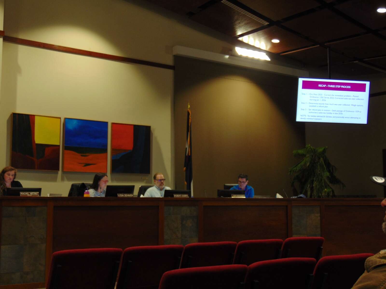 During the City Council meeting, community members asked about potential solutions for returning the $2.8 million in overcollected taxes and how the temporary suspension of the city sales tax will affect businesses and shoppers. The overcollection occurred after City Council failed to enact a voter‑approved reduction of the recreation center sales tax, which left shoppers paying an inflated rate from 2021 to 2025.