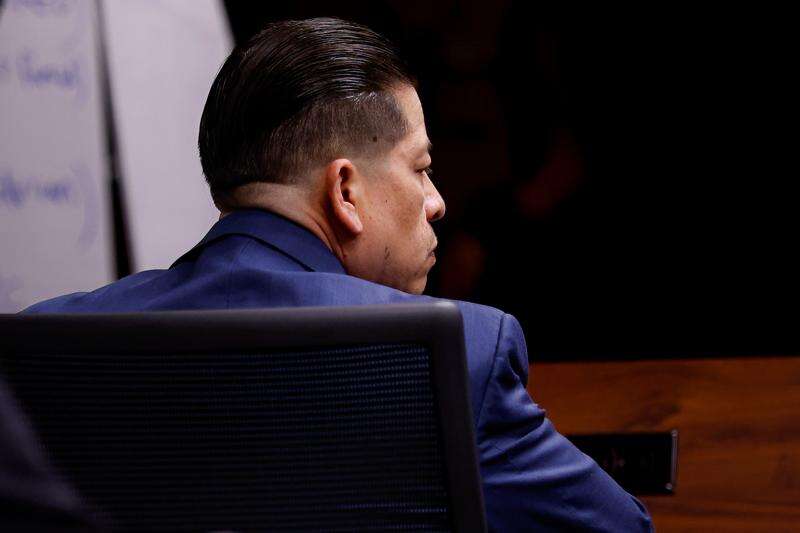 Former Uvalde school district police officer Adrian Gonzales listens to closing statements on the 11th day of his trial at the Nueces County Courthouse on Wednesday, Jan. 21, 2026, in Corpus Christi, Texas. (Sam Owens /The San Antonio Express-News via AP, Pool)