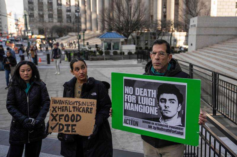 A cause célèbre for people upset with the health insurance industry, Mangione again drew supporters to the courthouse. Some wore green clothing and carried signs such as “Free Luigi" and “No Death For Luigi Mangione."
